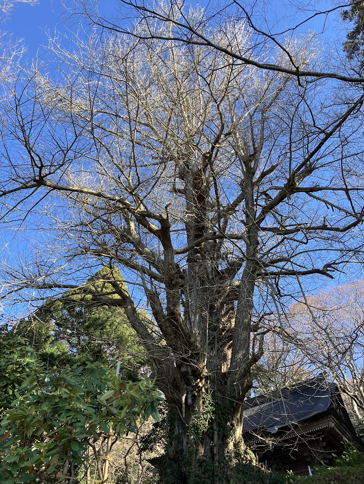 (樹齢800年大イチョウと奥に見える弘智堂)