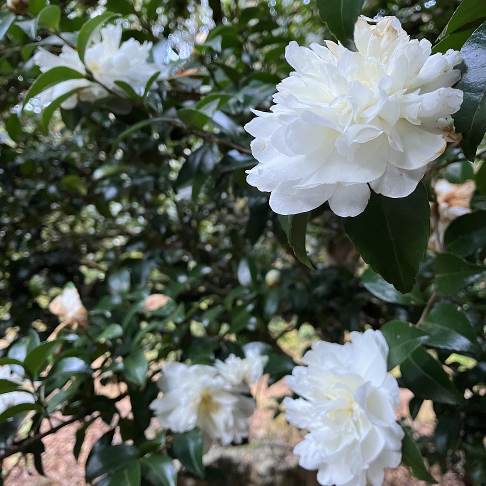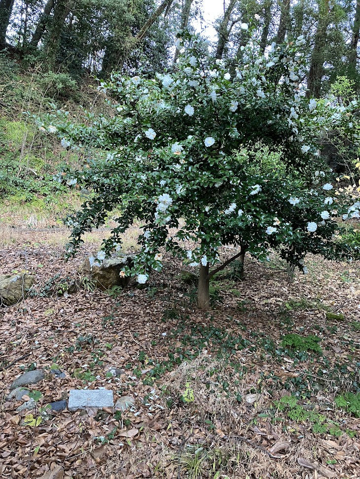 いま、その『ダムちゃんのお墓』そばの山茶花(サザンカ)の花が満開で見事なんです。