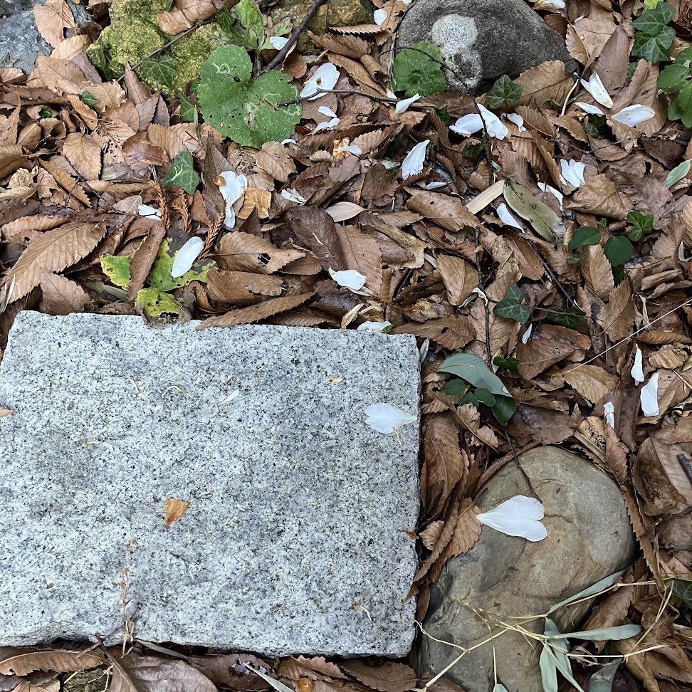 だってお墓に散った白い花びらもハート♡型なんですよー