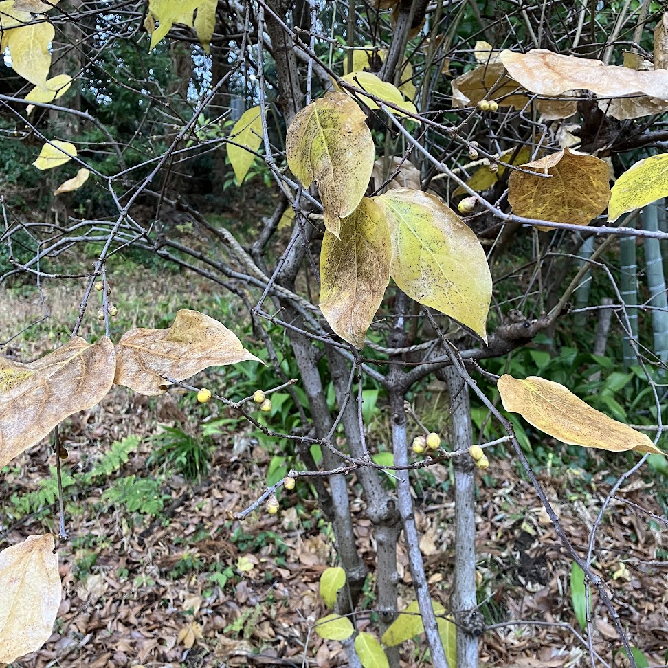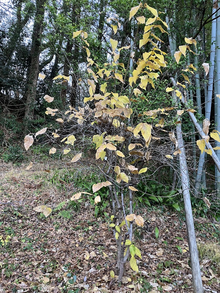 「今頃黄葉で落葉?なんの木だろう?アジサイじゃあるまいし」