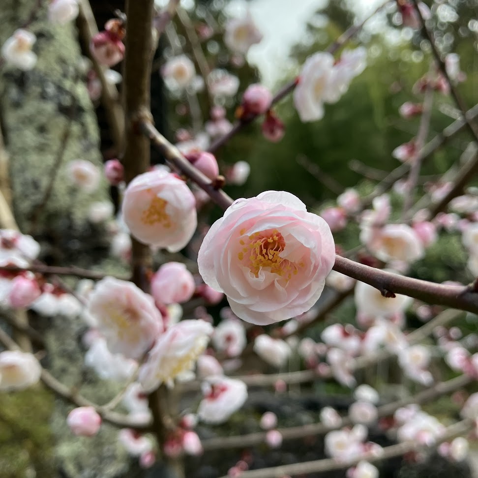 ※画像…客殿前の梅が見頃を迎えています(3月27日撮影)。